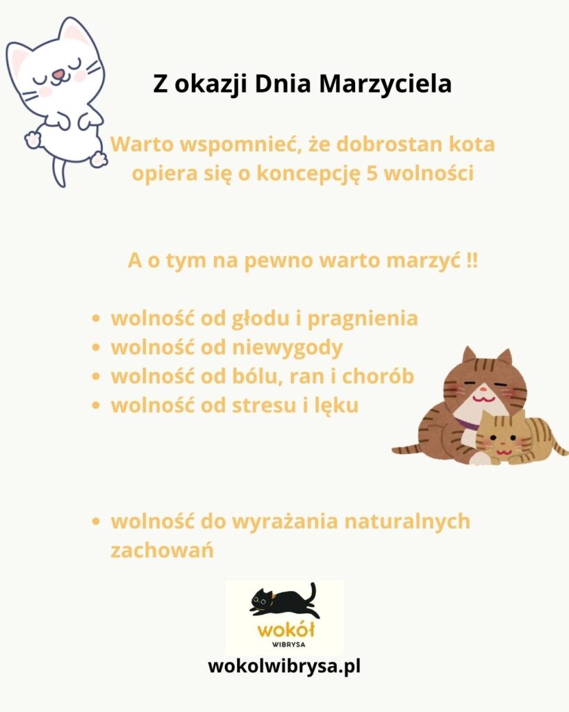 W przypadku kotów to m.in. możliwość swobodnego poruszania się, zabawy, drapania czy obserwacji otoczenia.